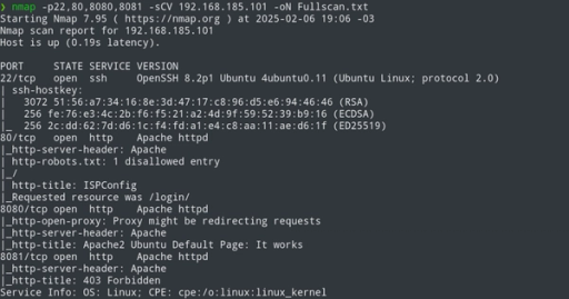 nmap -p22,80,8080,8081 -sCV 192.168.185.101