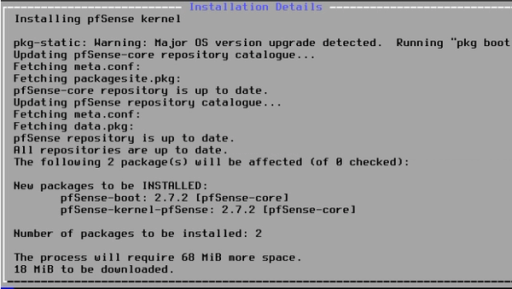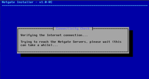 El instalador realizará una prueba para verificar la conexión a internet contra los servidores de Netgate. Espera a que termine; si configuraste correctamente la interfaz WAN (em0 en modo puente que recibe IP), debería continuar sin problemas.