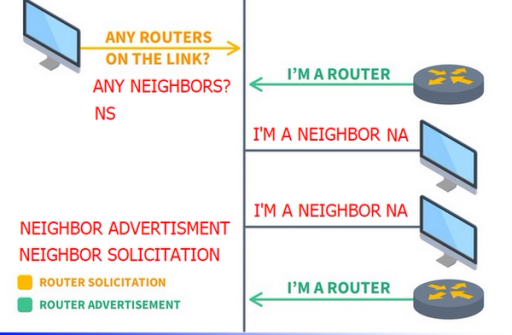 - Router Solicitation (RS) y Router Advertisement (RA): descubrimiento de routers y autoconfiguración.