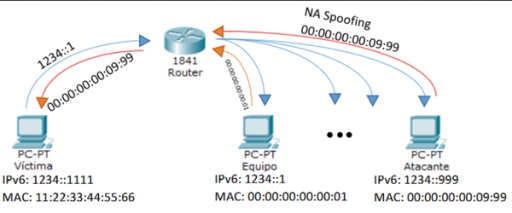 El ataque es similar al ARP Spoofing en IPv4, pero en IPv6 suele pasar desapercibido porque pocos administradores monitorizan ICMPv6.