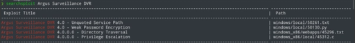 MAQUINA DVR4 (web 'Argus Surveillance DVR version 4.0.0.0' + Vuln 'Argus Surveillance DVR DIRECTORY TRAVERSAL + lateral move 'WEAK PASSWORD ENCRYTION')