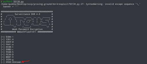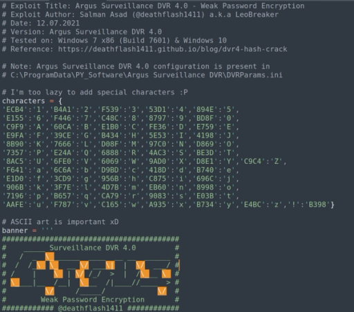 Con este script modifique el hash que viene por defecto en el, colocándole el hash que encontré en el archivo DVRParams.ini.