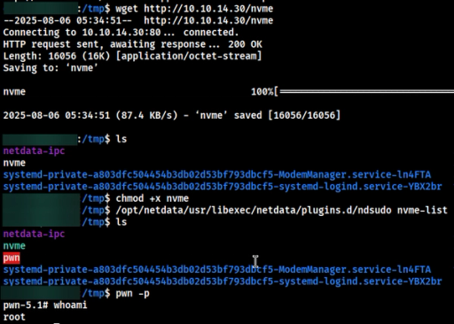 Luego ejecutamos `ndsudo`y veremos que hemos escalado privilegios a root.